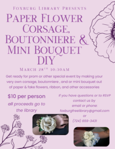 MArch 28th 10:30am Corsage, Boutinniere & Mini Bouget DIY $10 per person